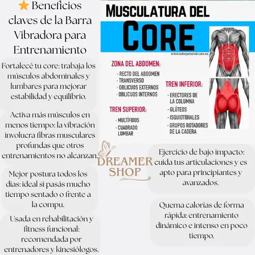 La Barra Vibradora lleva tu entrenamiento al siguiente nivel. Activa tu core, mejora tu resistencia y fortalece brazos y espalda en menos tiempo. Ideal para sumar a tu rutina de gym o entrenar donde quieras.