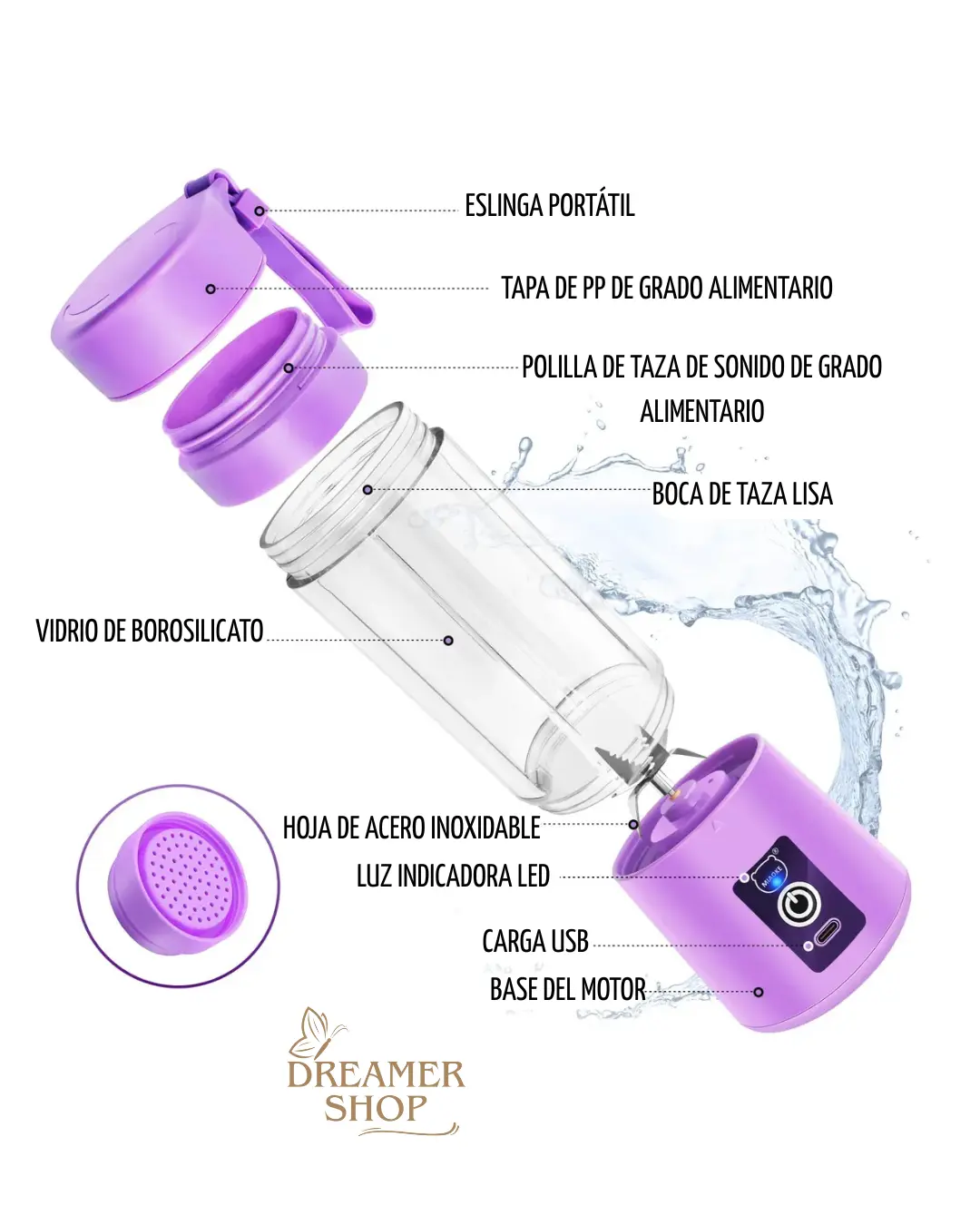 Pequeña, práctica y potente, te permite preparar batidos, licuados, shakes o jugos naturales donde estés: en casa, en la oficina, en el gym o de viaje.