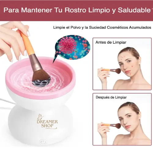 NUESTRO LIMPIADOR DE PINCELES ELÉCTRICO, mantiene los pinceles libres de bacterias y residuos, cuidando tu piel